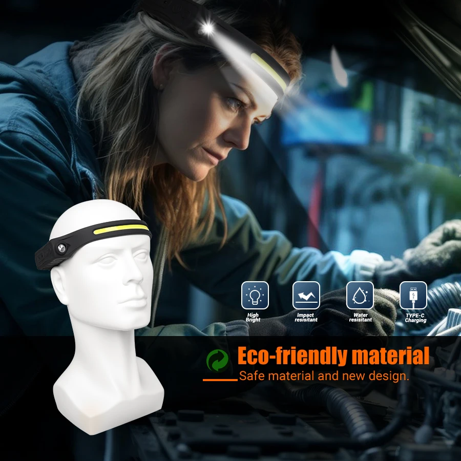 COB Auxiliary Light: Offers a wide, even floodlight for close-up tasks and peripheral vision.